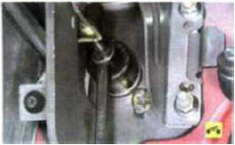 4. Для того чтобы определить свободный ход педали сцепления, измерьте расстояние от начального положения педали до положения, в котором при нажатии рукой на педаль ощущается увеличение сопротивления. Номинальный свободный ход педали сцепления 8 -_15 мм. Если свободный ход отличается от номинального значения, отрегулируйте длину толкателя главного цилиндра сцепления, для чего...