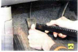 2. Нажмите на педаль до упора и повторите измерение. Разница между двумя измерениями и есть полный ход педали сцепления, номинальное значение которого 130-136 мм.