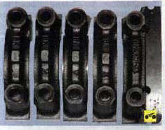 Крышки коренных подшипников предназначены только для одного конкретного блока цилиндров (крышки обрабатывают вместе с блоком). Между собой крышки невзаимозаменяемы. На крышках нанесены номера, соответствующие порядку их установки, считая от передней части двигателя (на крышке пятого коренного подшипника номера нет). Отлитые на крышках литеры «ВК» при установке должны быть направлены к левой стороне двигателя.