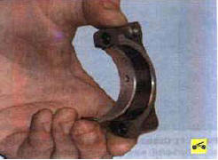 21. Сдвиньте крышку шатуна с посадочного места легкими ударами молотка через деревянную проставку...