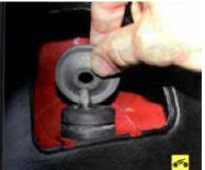 2. Сожмите фиксатор и откройте крышку для доступа к верхней опоре амортизатора.